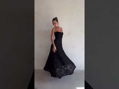 Our romantic Reba Gown features thin shoulder straps, a figure-skimming silhouette that flows effortlessly into a floor-grazing hem. Designed with a subtle sheerness that highlights the artistry of the fabric, this gown is perfect for evening events where making a statement is a must. Made from a luxurious black textured jacquard fabric adorned with floral motifs. This dress has no stretch.